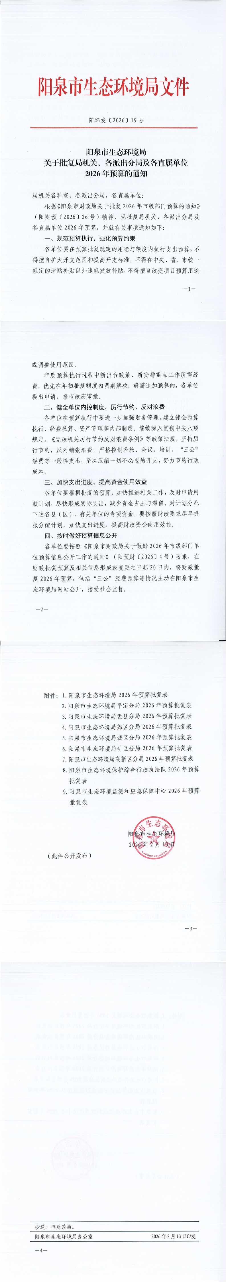 关于批复局机关、各派出分局及各直属单位2026年预算的通知