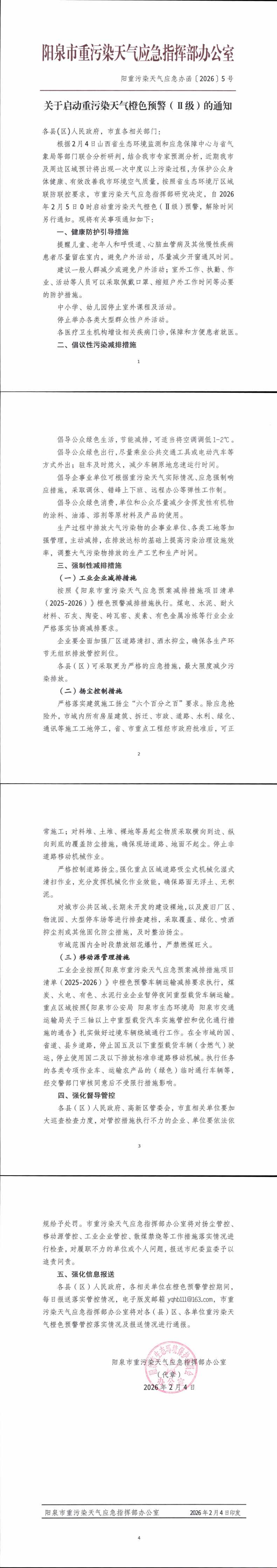 关于启动重污染天气橙色预警(Ⅱ级)的通知